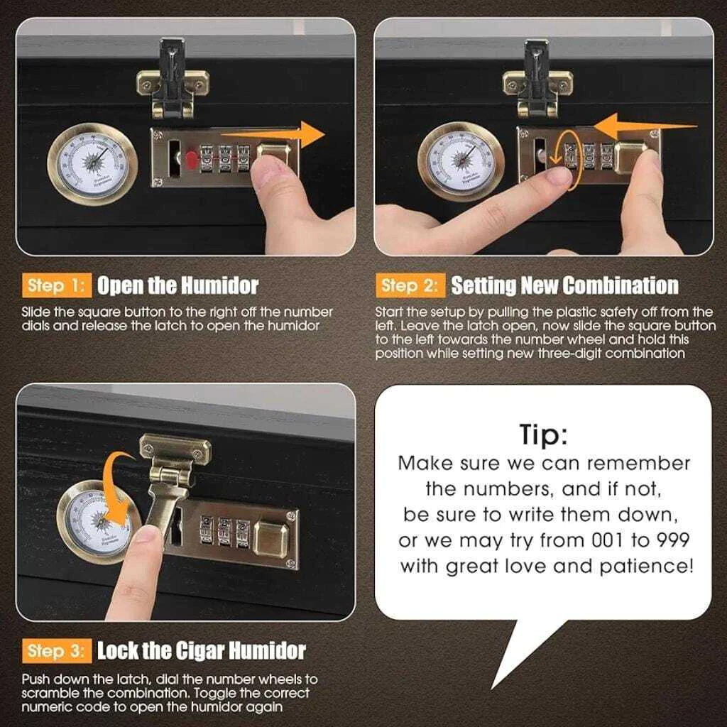 HUMIDOR + ACCESORIOS CON CLAVE CERROJO Protege y preserva tus habanos con este exclusivo humidor que combina funcionalidad y seguridad. Diseñado especialmente para amantes de los puros que valoran la conservación óptima y el acceso restringido, este humidor es la solución ideal para mantener tus habanos en las mejores condiciones.